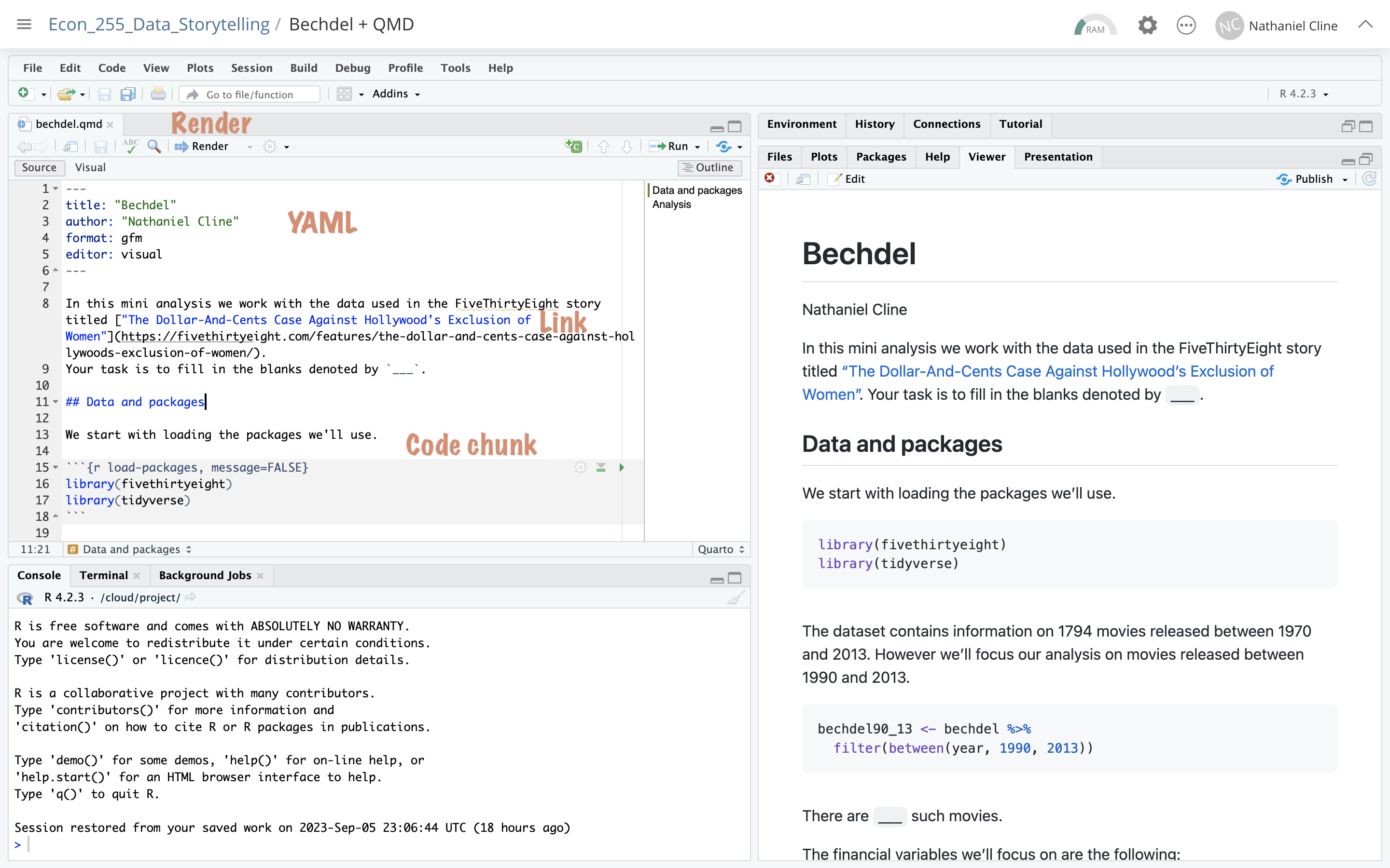 Remember this, and expect it to bite you a few times as you’re learning to work with QMD (R Markdown)!